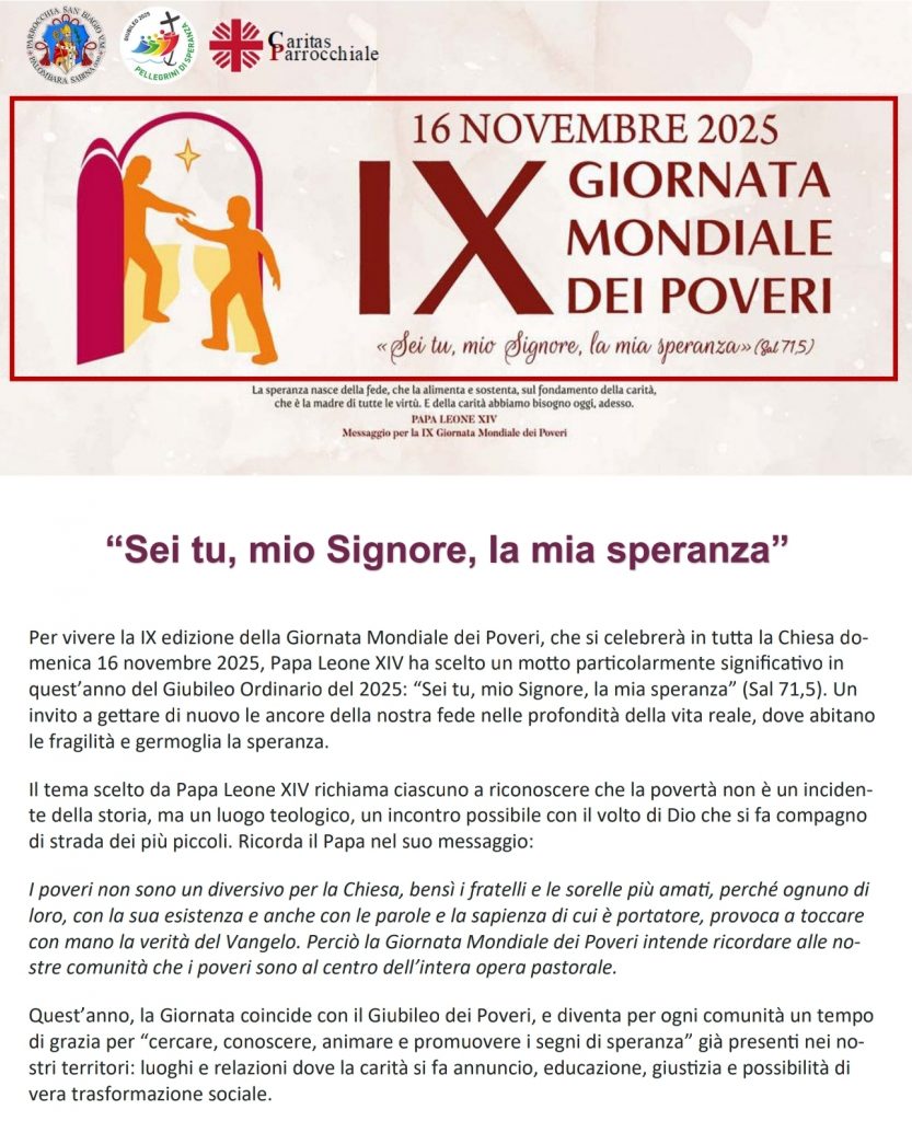 La carità è dono che dà senso alla nostra vita e grazie al quale consideriamo chi versa nella privazione quale membro della nostra stessa famiglia, amico, fratello. Il poco, se condiviso con amore, non finisce mai, ma si trasforma in riserva di vita e di felicità. Così avvenne per la farina e l’olio della vedova di Sarepta, che offre la focaccia al profeta Elia (cfr 1 Re 17,7-16); e per i pani che Gesù benedice, spezza e dà ai discepoli da distribuire alla folla (cfr Mc 6,30-44). Così avviene per la nostra elemosina, piccola o grande che sia, offerta con gioia e semplicità.